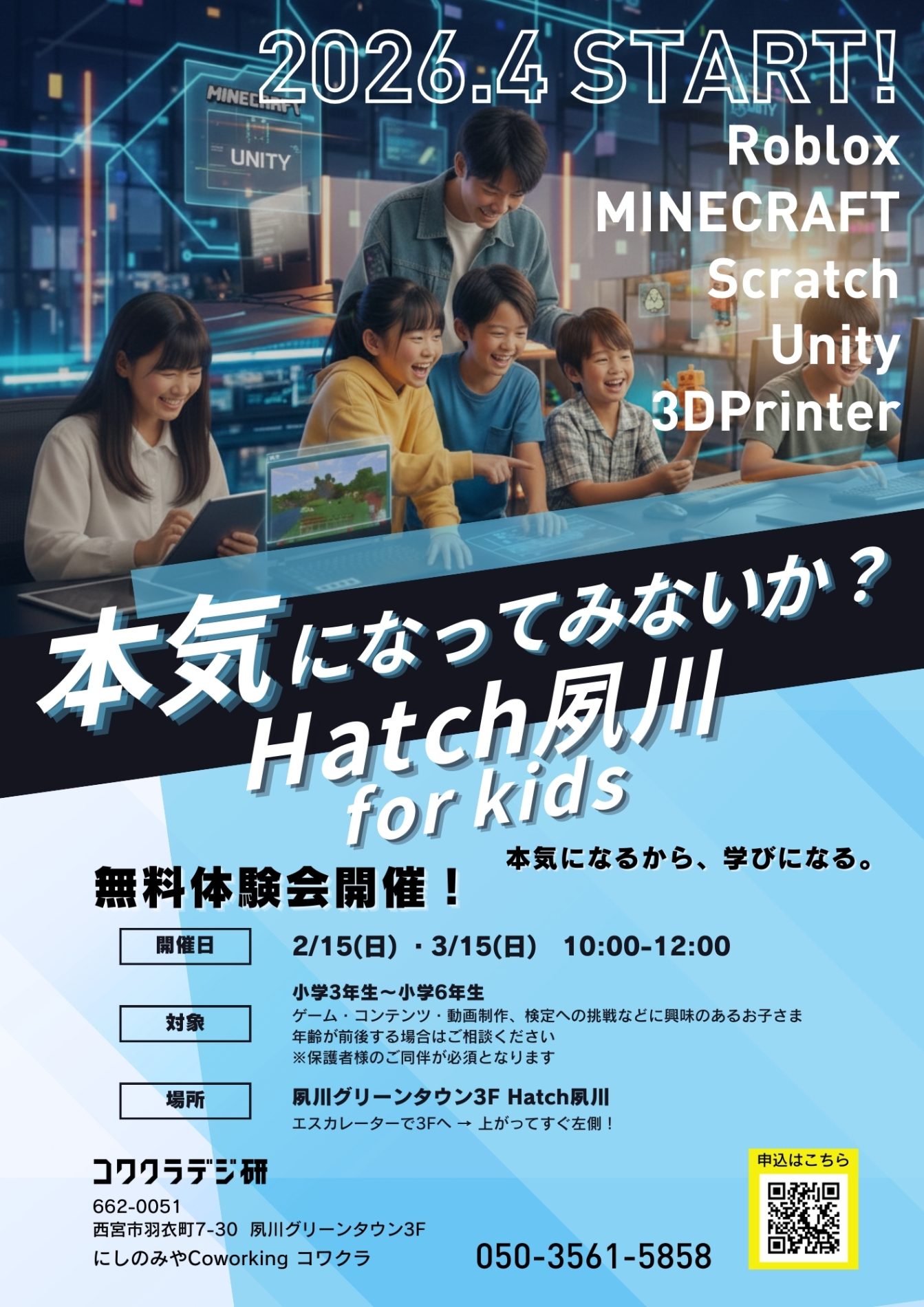 Hatch夙川は、パソコンやガジェットが好きな子どもたちが、ゲームやパソコンで「遊ぶ」だけでなく、「作る」側として楽しめる場所です。