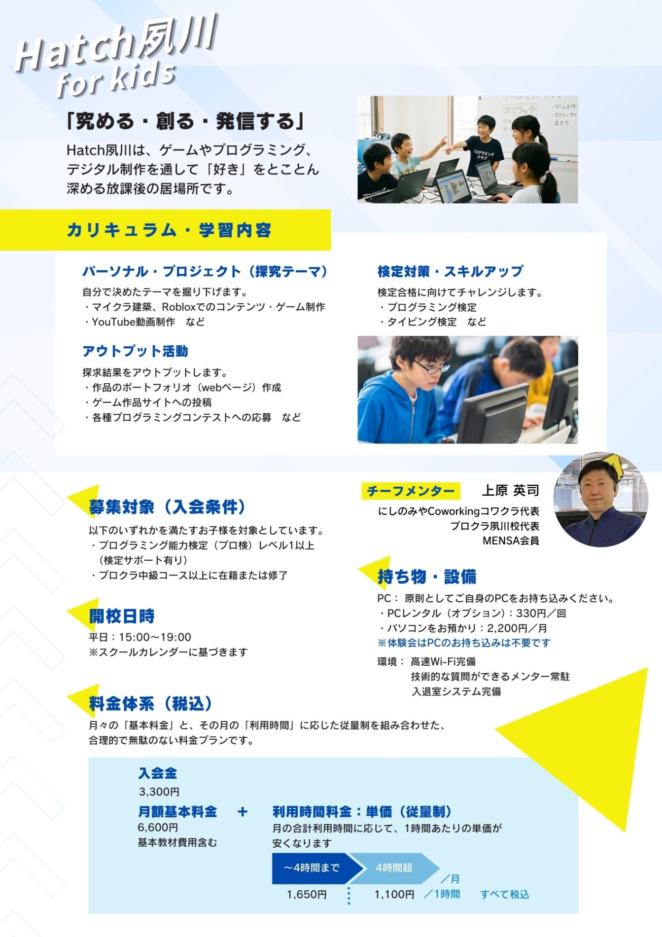 “未来のプログラマー・クリエイターが集まる場所”として、放課後の新しい選択肢です。